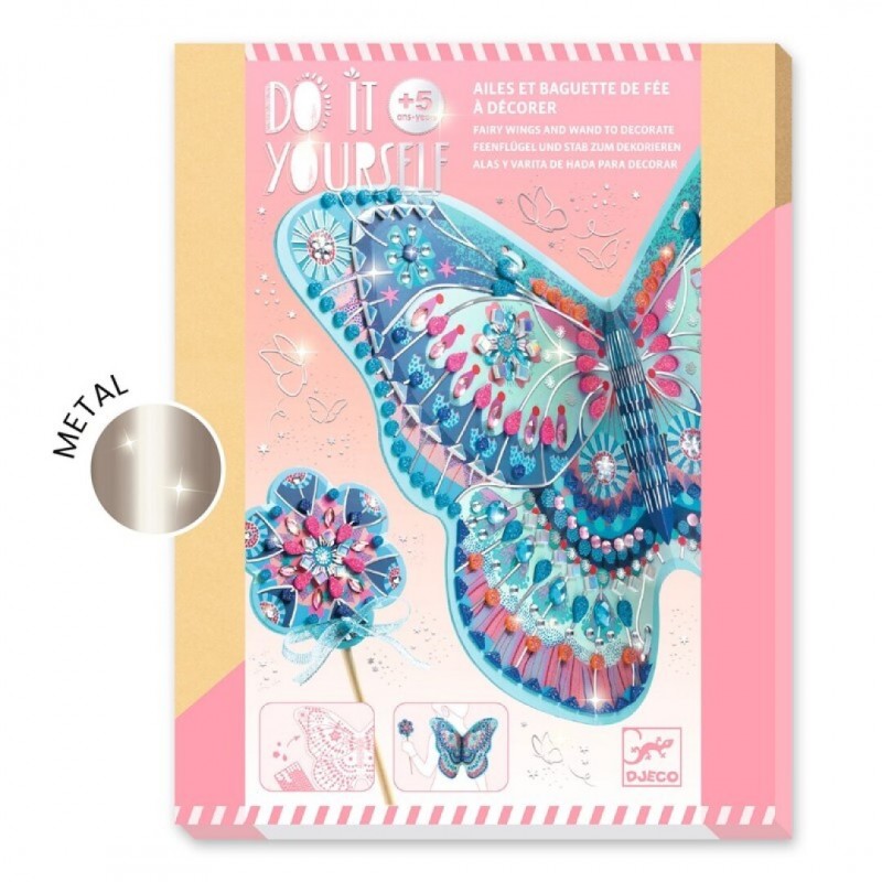 Kit creativo compuesto por una varita y un par de alas de hada para decorar.