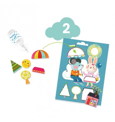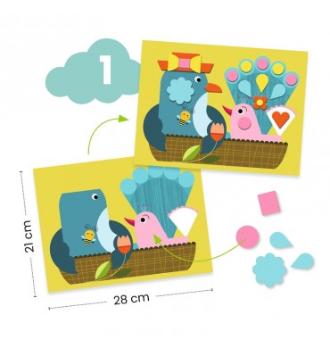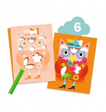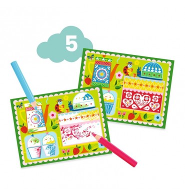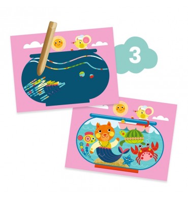 Este cofre contiene 6 ingeniosas actividades: collage de cartón, collage de fieltro, coloración mágica, coloración con agua, tarjeta para rascar, parada de color.