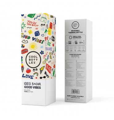 Good Vibes es puro optimismo. Un collage de cubitos felices, frutas, arcoíris, helados y palabras que te levantan el ánimo al primer vistazo. Todo explota en colores vibrantes y formas espontáneas, como una lista de reproducción de verano ilustrada. Es imposible no sonreír. Porque a veces solo necesitas eso: hielo, sol... y no tomarte la vida tan en serio.