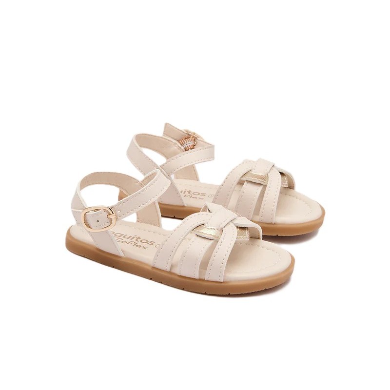 Estas Sandalias GoFlex nudo beige están diseñadas para la comodidad en climas cálidos y el movimiento natural. La correa del tobillo con hebilla ajustable los mantiene seguros, mientras que la suela de caída cero, puntera ancha, forma neutra, y diseño flexible mantiene una posición natural del pie. Acabado con un bonito detalle de nudo,