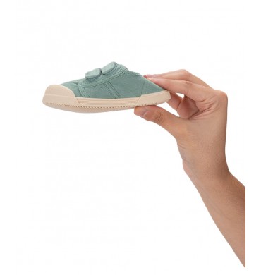 Zapatilla de lona con doble cierre adherente 100% algodón, de concepto barefoot medium, cero drop, flexible, blandita y con plantilla extraíble. Lavar en agua fría no sin antes extraer la plantilla.