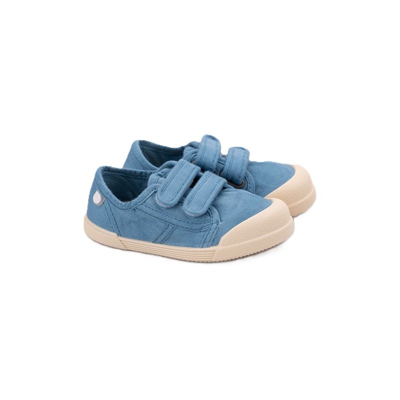 Zapatilla de lona con doble cierre adherente 100% algodón, de concepto barefoot medium, cero drop, flexible, blandita y con plantilla extraíble. Lavar en agua fría no sin antes extraer la plantilla.