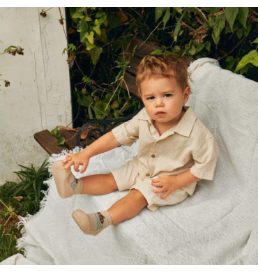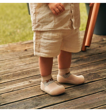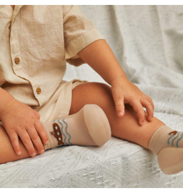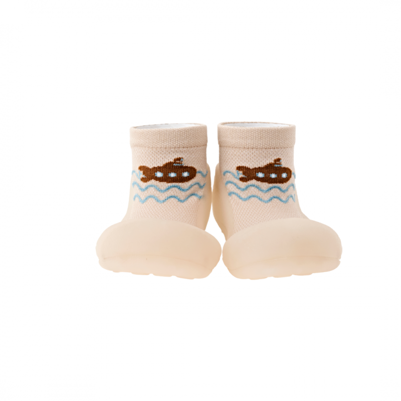 Submarine Beige, un modelo de lo más fresquito, con detalle de submarino, y con calcetín en tono tostado, tejido de AQUA-X, y altura del calcetín al tobillo. Un modelo ideal para que tu bebé camine con total libertad de movimiento dentro o fuera del agua, ya que puede usarse para ir a la playa, la piscina, al parque o donde quiera.  ¡Modelo con TEJIDO AQUA-X!