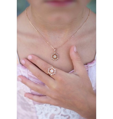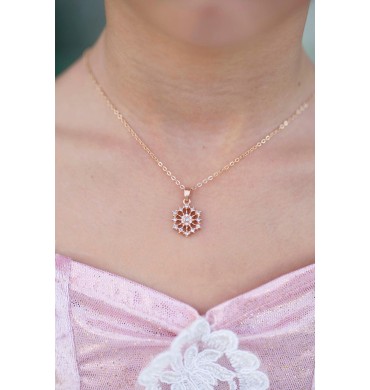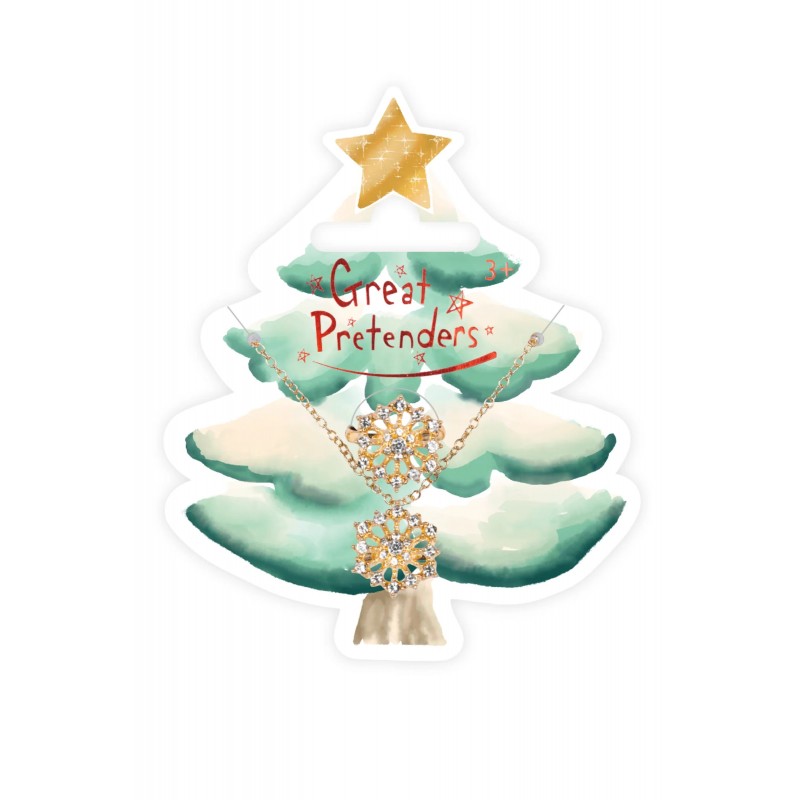 Brilla como un copo de nieve con nuestro conjunto de collar y anillo Copo de Nieve. Este dúo festivo consta de un collar y un anillo con brillantes dijes de copos de nieve con incrustaciones de oro y diamantes.