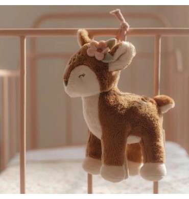 ¡Que duermas bien! Este dulce ciervo te lleva a un mundo de sueños lleno de maravillas e imaginación. Crea una rutina fija para la hora de dormir con las encantadoras melodías de esta linda caja de música. Tira del aro de madera y la relajante canción de cuna empezará a sonar mientras tu pequeño se duerme. Un regalo maravilloso y una hermosa decoración para la habitación del bebé.