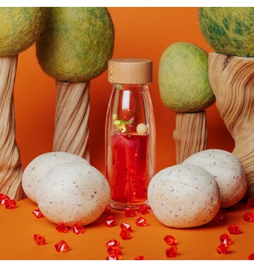 ¿Cómo sería atrapar un sueño dentro de una botella? Con esta serie hemos querido averiguarlo. Damos un paso más en la búsqueda de nuevos confines sensoriales, con un nuevo líquido de efecto flotante que les va a encantar. Cada vez que agiten la botella…, ¡Comienza el viaje! Planetas, astronautas, animales… empiezan a flotar con el cambio de densidad del líquido, en un ensueño lleno de burbujas que captura su imaginación y les ayuda a sentirse relajados.