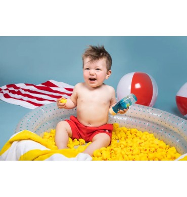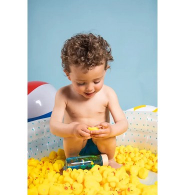 ¡Al agua, patos! Mamá Pato se da un chapuzón y juega con su balón de playa. ¿Puedes ver a sus patitos buceando bajo el agua?