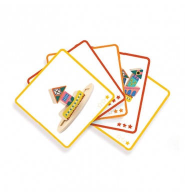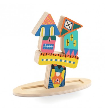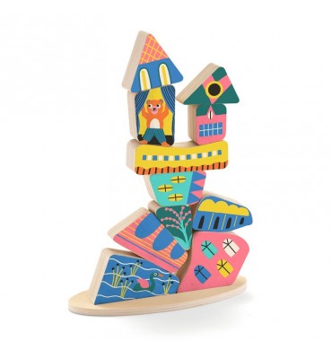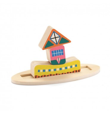 Ze Stakaboom es un juego con 14 bloques de madera y 20 tarjetas de retos que potencia la motricidad fina y la asociación de formas en los más pequeños.
