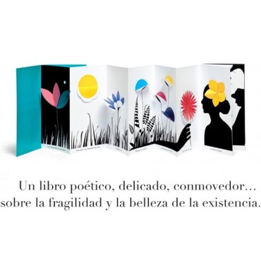 Un libro poético, delicado y conmovedor... sobre la fragilidad y la belleza de la existencia. Despliega y resalta el color de las flores sobre fondo blanco y negro.