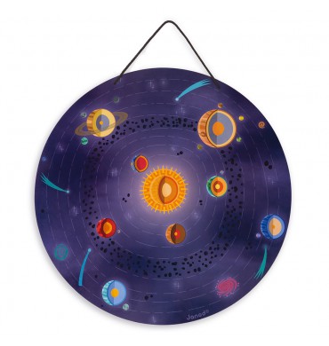 ¡Mapa del Sistema Solar para colgar! Se componen de 20 imanes gigantes, de los cuales 10 corresponden a los planetas de nuestro Sistema Solar. Incluye una lámina de pegatinas, para identificar todos los planetas en el mapa, y un póster educativo (nombre y diámetro de los planetas, y distancias de los planetas respecto al Sol). Pegatinas y póster en 6 idiomas.