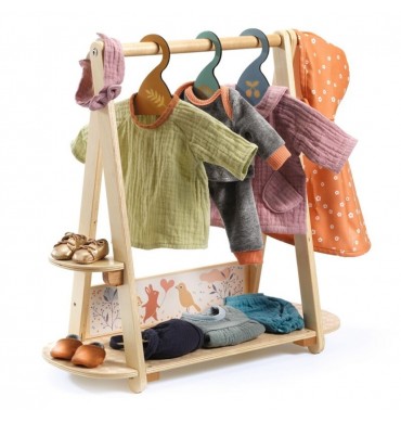 Perchero para colgar la ropa de las muñecas Pomea de Djeco, plegable.