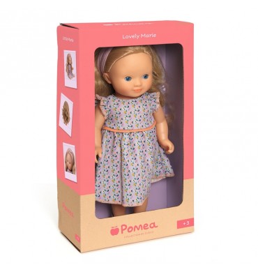 Con sus bonitos ojos marrones y su precioso atuendo, Lovely Marie es una muñeca para niños a partir de los 3 años. Es ligero y su tamaño (32 cm) y una estructura que le permite mantenerse de pie. Su rostro, brazos y piernas están hechos de vinilo muy suave, agradable al tacto. Sus ojos se cierran cuando se la acuesta de espaldas.