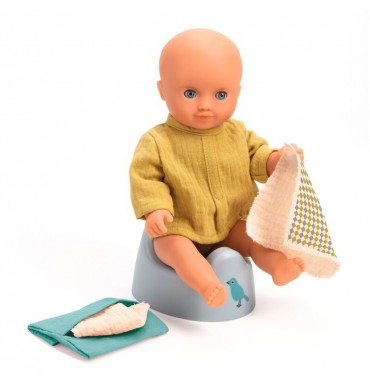 Un tarro y un estuche con dos toallitas suaves de gasa doble: ¡accesorios imprescindibles para los primeros pasos en la limpieza de tu muñeca!