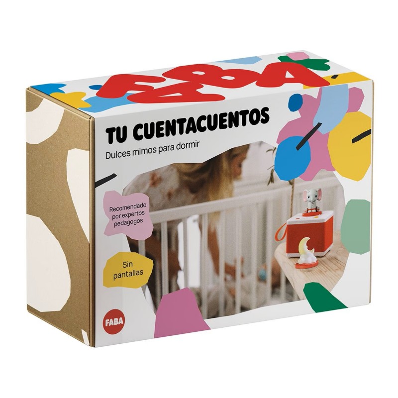 Set cuentacuentos FABA para abordar el momento de ir a la cama de manera sencilla. Incluye 1 altavoz con su funda protectora y 2 Personajes Sonoros: "Cuentos con beso para las buenas noches" con historias breves de buenas noches para escuchar antes de irse a la cama y "Ele el elefante", con algunas de las canciones más queridas por niños y niñas. Un kit que te transportará al universo de FABA, donde el "Érase una vez" tiene el poder de durar para siempre. Incluye también una guía de sueño que explica los ritmos del sueño respondiendo a las preguntas más frecuentes con sugerencias útiles y prácticas.