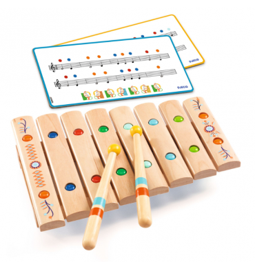 Un precioso xilófono de 8 láminas de colores, decorado con el alegre estilo Animambo, que invita a los niños a descubrir el placer de la música. Con sus 2 mazos de madera, podrán experimentar con los sonidos y seguir las partituras codificadas por colores, perfectas para iniciarse en el ritmo y la melodía de forma intuitiva y divertida.