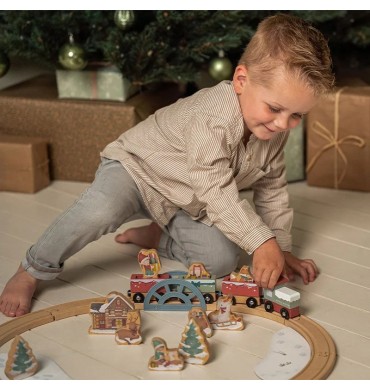 ¡El tren navideño Little Dutch es el complemento perfecto para estas fiestas! La vía de madera incluye una locomotora, tres vagones y diversos accesorios, como una casita, regalos y un reno. Los niños a partir de 18 meses pueden usar este tren para crear sus propias historias navideñas y dar rienda suelta a su imaginación. Este precioso tren navideño es un regalo ideal para colocar bajo el árbol de Navidad y, sin duda, proporcionará muchos años de diversión y creatividad.