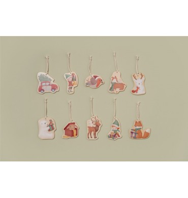 ¡Vamos a decorar el árbol de Navidad con estos adornos de madera! O distribúyalos por toda la casa para agregar alegría navideña en los lugares más inesperados. ¿Cuál es tu favorito? ¿El lindo reno con su amiguito conejito? ¿O el que tiene el oso polar y el pájaro petirrojo? Sentirás la magia de la Navidad en cada uno de los 10 adornos ilustrados. ¡Que tengas unas maravillosas vacaciones de invierno!