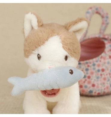 Para los pequeños amantes de los gatos, tenemos a Marley, una gatita adorable, en un precioso bolso con estampado floral. Con su suave pelaje y su lindo collar, seguro que se convertirá en una amiga muy querida. El bolso tiene una abertura en la parte delantera para que la cabeza de la gatita pueda asomar cómodamente. Y, por supuesto, también incluye un pez de juguete, ¡porque jugar y recibir mimos es lo que más le gusta a esta gatita!