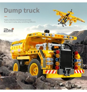 ¡Una ingeniosa combinación de camión volquete de ingeniería y avión, que presenta una sensacional experiencia 2 en 1! Prepárate para sorprenderte con sus dos formas geniales, meticulosamente diseñadas para replicar a la perfección los principios mecánicos, brindándote una experiencia de construcción inigualable.