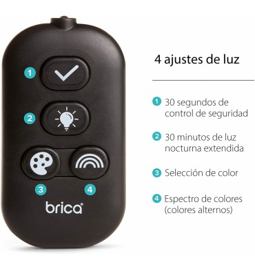 No hay nada como ver esa carita tan dulce por el retrovisor mientras conduce, especialmente de noche. El espejo con luz nocturna Baby In-Sight, de Brica, te permite comprobar cómo está el bebé que viaja orientado hacia atrás, de día o de noche. A diferencia de otros espejos nocturnos, que tienen luces deslumbrantes que pueden distraer al conductor, el espejo con luz nocturna Baby In-Sight está diseñado para que las suaves luces LED te ofrezcan una visión clara del bebé, sin deslumbramientos, hasta en las noches más oscuras. Con cuatro ajustes LED que se activan remotamente, este espejo con luz hará que los diminutos viajeros se sientan acompañados en el asiento de atrás. Haz una comprobación rápida con la luz de revisión de 30 segundos o activa la luz nocturna suave durante 30 minutos; selecciona diferentes ajustes de color para ayudar a calmar a los bebés exigentes o entretenlos con diferentes luces y colores, todo ello desde el asiento del conductor . Este espejo de coche extragrande se fija con seguridad a los reposacabezas ajustables para proporcionar una visión de calidad superior y sin distorsiones. Y cuando el bebé crezca podrá seguir usándolo gracias a su diseño pivotante, que encuentre el ángulo perfecto en cada momento. ¡Disfrutad del viaje!